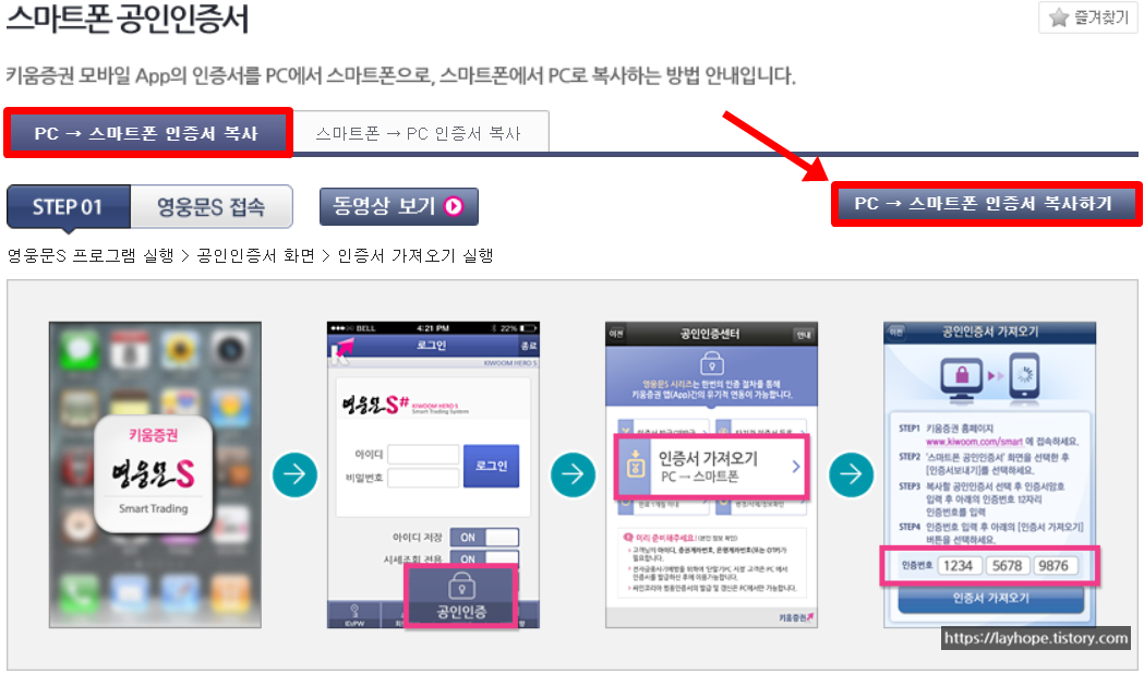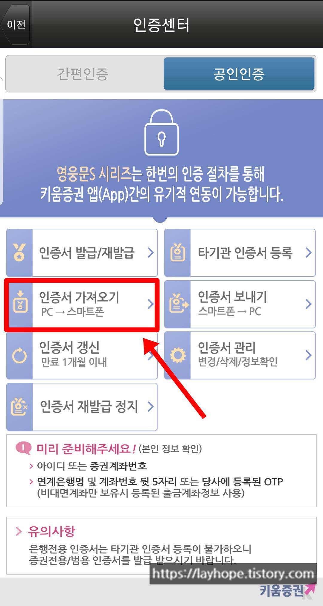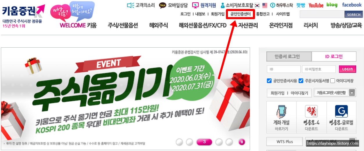 안녕하세요. 주식투자블로거 희망이야기입니다. 오늘은 키움증권 공인인증서 휴대폰으로 내보내기 방법에 관한 칼럼을 준비해보았습니다. 주식투자는 컴퓨터를 통해서 주식을 거래하는 HTS 프로그램과 스마트폰에서 주식을 거래하는 MTS 어플리케이션이 있습니다. 최근에는 비대면계좌개설 앱과 함꼐 MTS 거래가 대세를 이루고 있는데 어디서든 사용할 수 있는 핸드폰에서 주식을 거래할 수 있다는 것은 어떤 급박한 상황에서도 빠르게 대응을 할 수 있다는 장점이 있습니다.