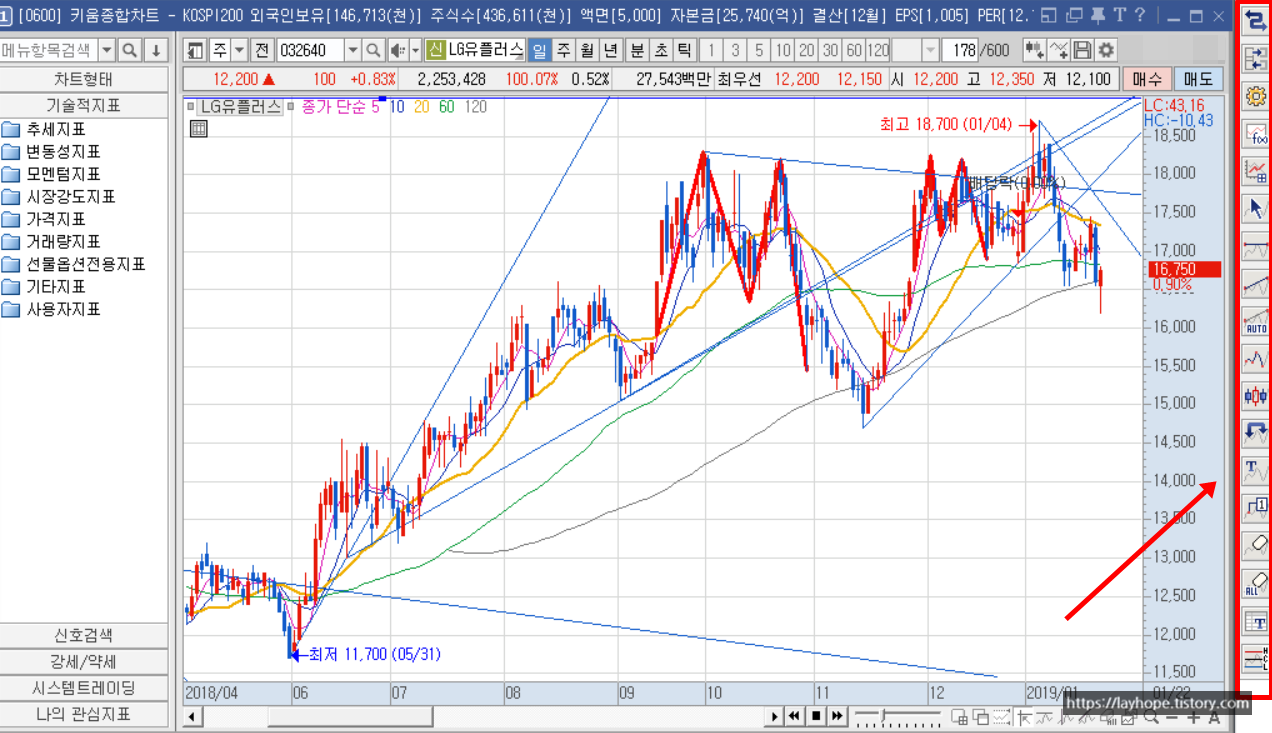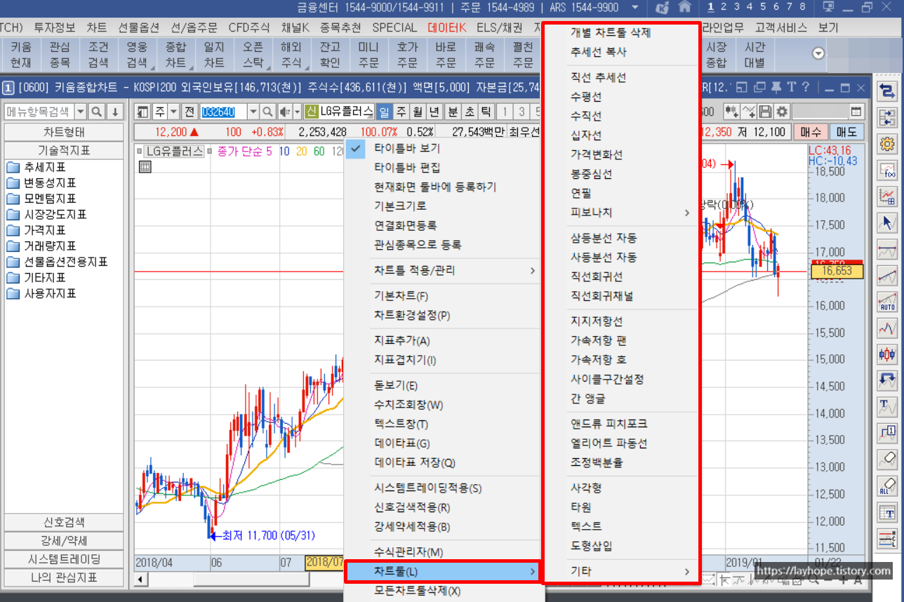 영웅문 HTS 프로그램에서 차트 추세선 그리기