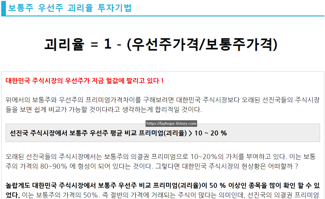 ◆ 주식 리밸런싱 투자 예시 1 - 보통주 우선주 괴리율 투자 기법