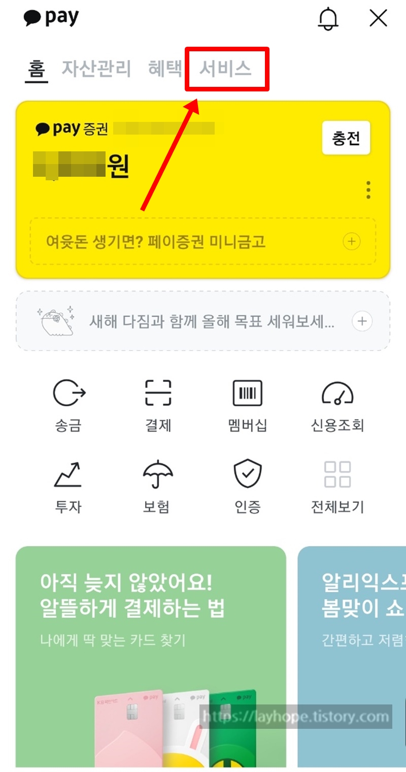 2. 더보기 메뉴를 클릭하고 상단 카카오페이로 들어갑니다.